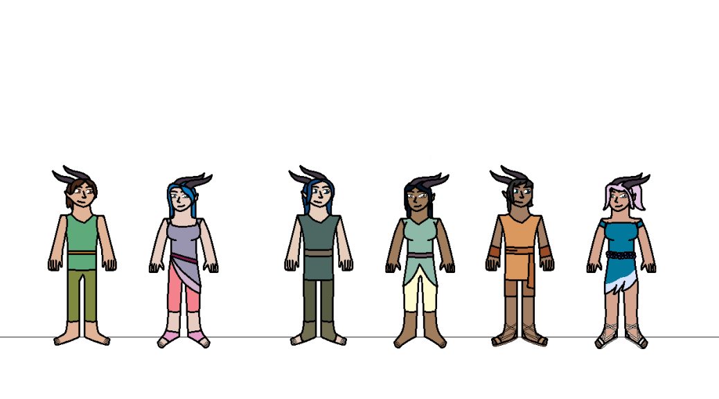 The gaias are fey like humanoids with horns. the name for the race is a reference to Gaia, the greek goddes of earth and mother of all life. the gaias have nature magic and they’re lead by their queen, Seraphina. But emperor scumbag (Erix) and his army attacked the gaias home where a few gaias were enslaved and killed and 10 years later, they eventually went extinct.