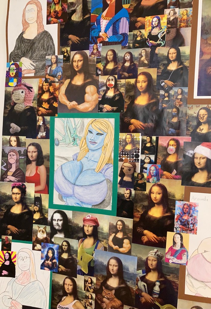 De har även målat sina egna versioner av Mona Lisa. På fri hand eller via färdiga mallar som de sedan gjort om till sina egna Mona Lisor.