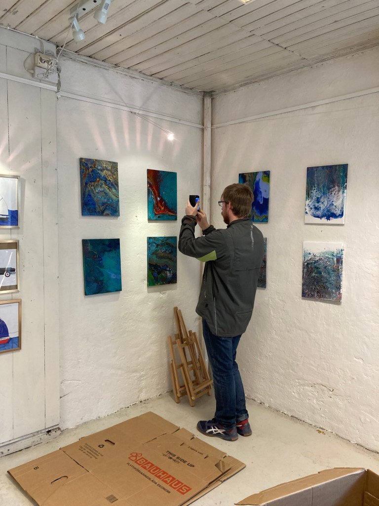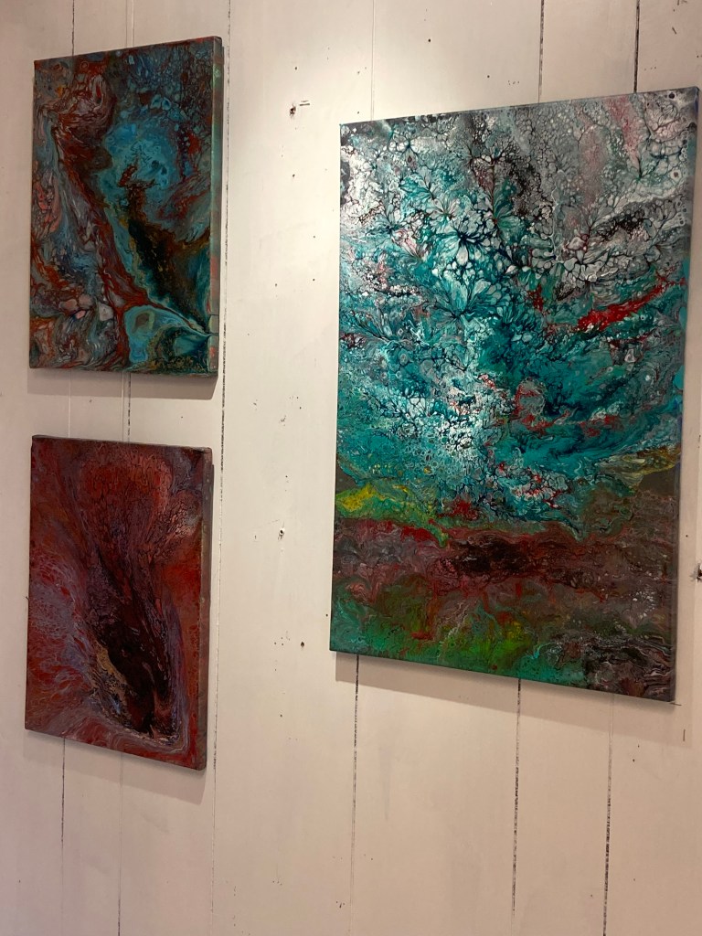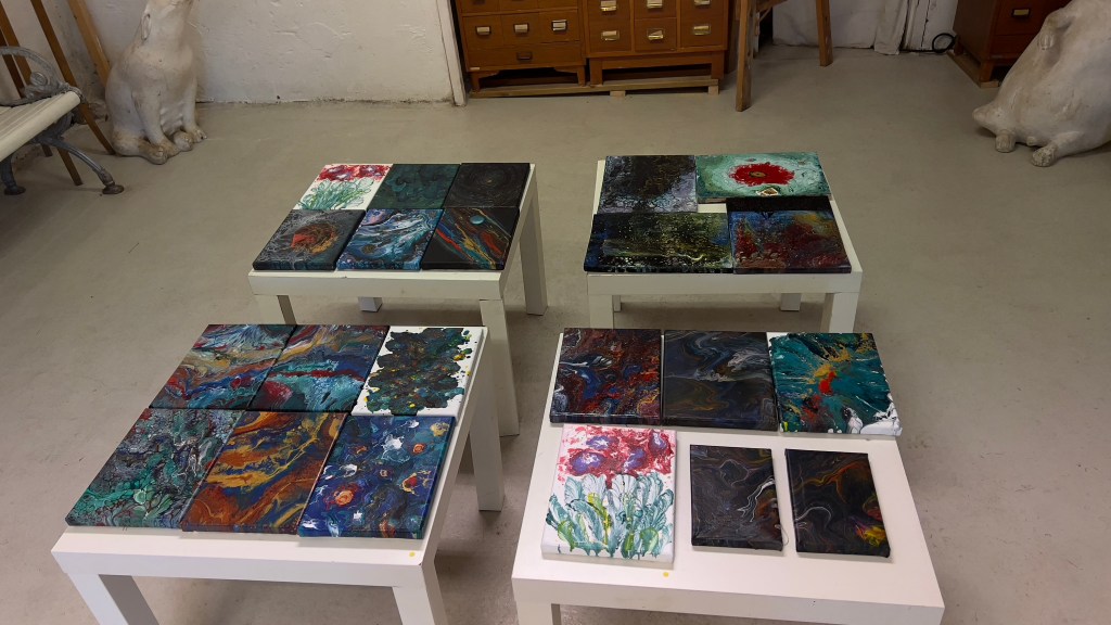 Det finns flera olika tekniker i hur färgen kan hällas för att få olika resultat. Detta är ett första test och fler tavlor kommer det att bli.