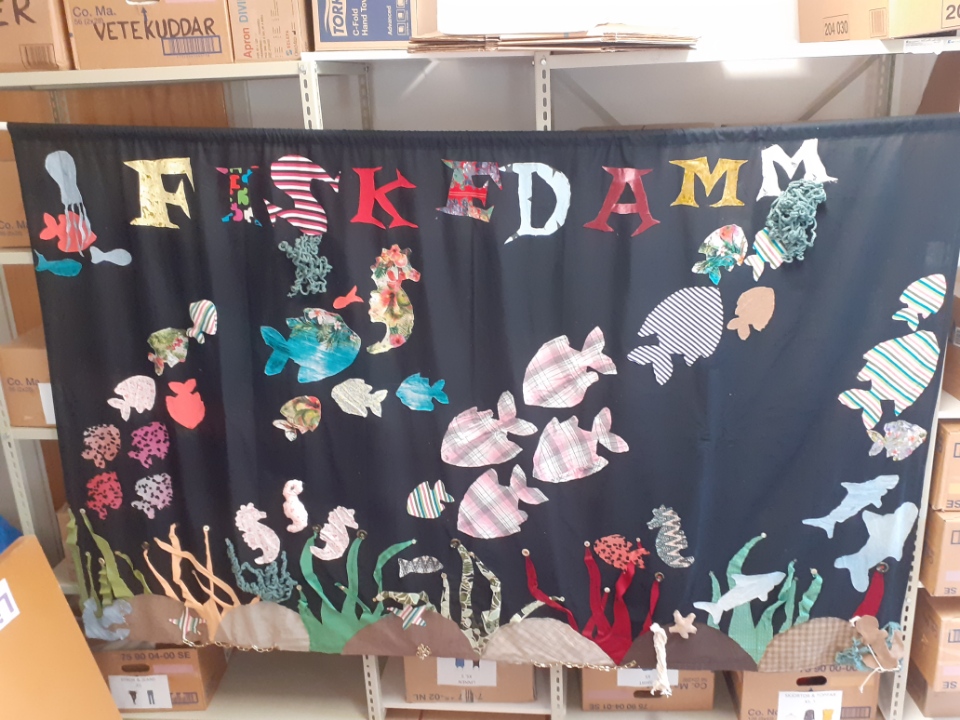 WinWin fick en beställning från Folkets Hus att skapa ett fiskedamms-draperi. Hurra!