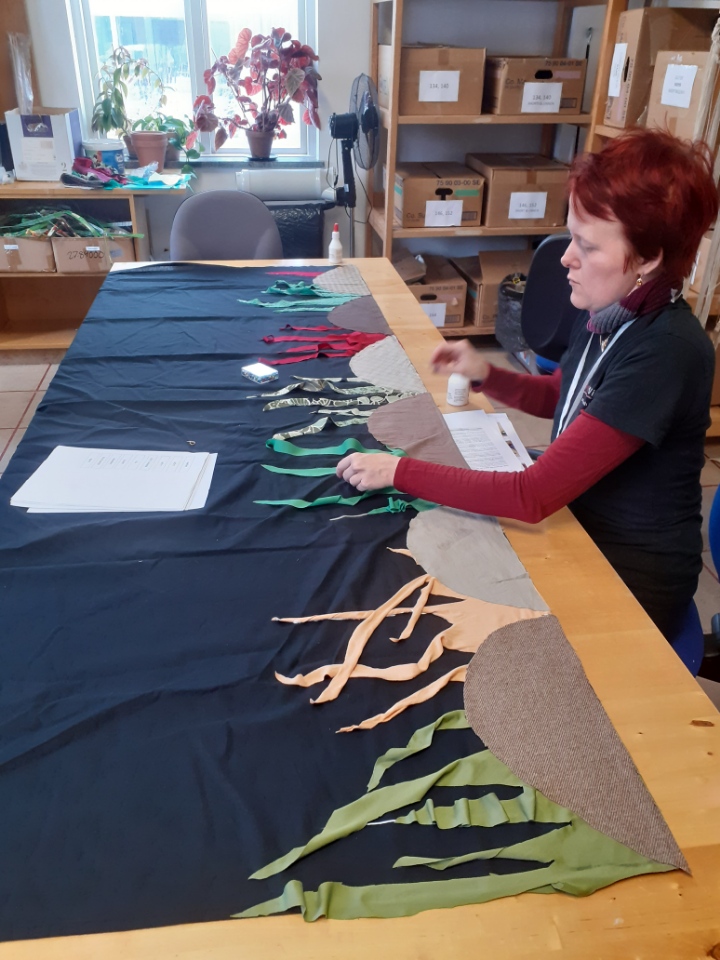 Draperiet är helt och hållet gjort för hand och till stor del genom återbruk. Kläder som skänkts och sorterats ut (på grund av små hål, fläckar och så vidare) har använts till att klippa ut fiskar, sjöhästar, havsbotten och maneter. Sjögräs och tång har virkats och till dekoration finns det även kedjor, knappar och snörrep.